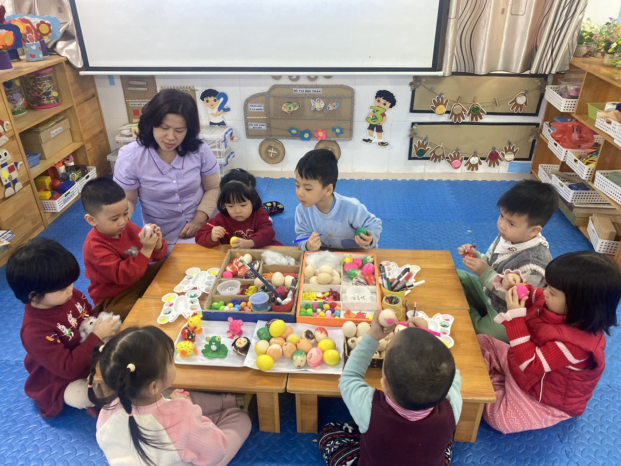 Từ những vỏ trứng tưởng chừng là một vật vô dụng sẽ vất đi sau khi sử dụng. Tuy nhiên, dưới sự hướng dẫn của cô giáo, bé đã biết cùng cô tô màu, phơi khô và trang trí thành những con vật rất ngộ nghĩnh, đáng yêu