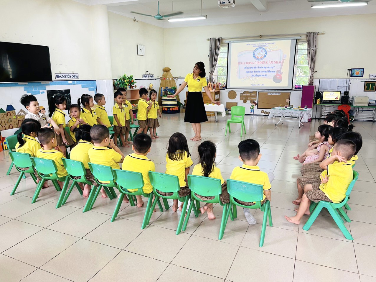 Thông qua hoạt động, các bé được rèn luyện khả năng ghi nhớ có chủ định, phát triển khả năng âm nhạc, biểu lộ cảm xúc của mình khi thể hiện bài hát. Bên cạnh đó còn bồi dưỡng cho các bé tình cảm yêu mến trường lớp, yêu quý cô giáo và các bạn.