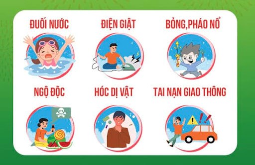 Các nguyên nhân thương tích thường gặp đối với học sinh là tai nạn giao thông, té ngã, đuối nước, bỏng, điện giật, ngộ độc do hóa chất, thực phẩm, vật sắc nhọn đâm, cắt, đánh nhau, bạo lực hoặc do tiếp xúc với các vật nổ như pháo và bao gồm cả trường hợp thương tích do hành động tự tử gây ra.