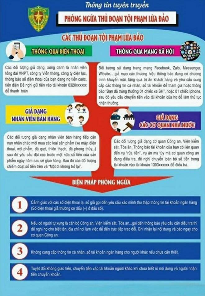 Nâng cao cảnh giác với các thủ đoạn lợi dụng dịch bệnh covid Phòng ngừa các thủ đoạn lừa đảo qua mạng xã hội Theo thông tin từ cá cơ quan chức năng, trong thời gian Thành phố Hà Nội thực hiện giãn cách xã hội, nhiều đối tượng đã sử dụng mạng xã hội và một số thiết bị công nghệ để tiến hành những hành vi lừa đảo chiếm đạo tài sản của người dân như hứa hẹn các gói hỗ trợ an sinh xã hội, tiêm phòng vaccine, nhận quà hỗ trợ dịch bệnh, cho vay ưu đãi hoặc giả danh các cơ quan nhà nước... bằng cách yêu cầu cung cấp ảnh, số chứng minh, căn cước công dân, số tài khoản ngân hàng và đặc biệt là các mã OTP được gửi đến số điện thoại của người dân. UBND quận Long Biên khuyến cáo người dân cần hết sức cảnh giác, đề phòng trước những thủ đoạn trên bằng cách: 1. Tuyệt đối không cung cấp các thông tin cá nhân như: ngày tháng năm sinh, địa chỉ, số điện thoại, số chứng minh, căn cước công dân, số tài khoản ngân hàng, ảnh chân dung, đặc biệt là mã OTP cho bất kỳ cá nhân, tổ chức nào kể cả ngân hàng. Không thực hiện chuyển tiền để đóng tiền phạt, mua hàng, nộp thuế theo các yêu cầu qua điện thoại, email hay mạng xã hội của bất kỳ cá nhân, tổ chức nào. 2. Trường hợp nhận được các yêu cầu như trên, cần liên hệ gọi điện trực tiếp tới các cơ quan chức năng (ngân hàng, công an phường, bưu điện, UBND phường sở tại) để xác minh làm rõ. 3. Các chính sách hỗ trợ, an sinh xã hội của Chính phủ, Thành phố Hà Nội sẽ được UBND các phường, phòng Văn hóa thông tin, Lao động Thương binh xã hội Quận Long Biên thông báo công khai, thông tin cụ thể trên các phương tiện thông tin đại chúng.