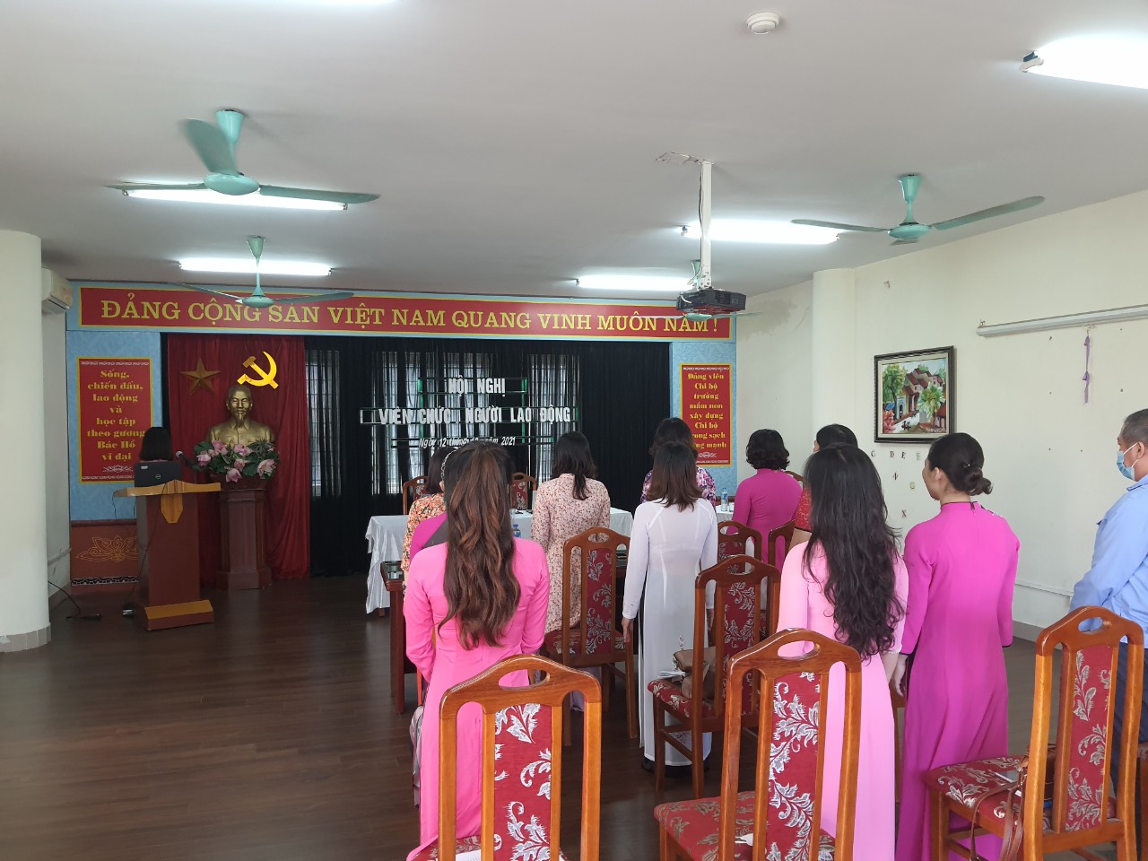 Hôm nay, ngày 12 tháng 10 năm 2021 được sự đồng ý của Liên đoàn Lao động Quận, Chi bộ trường mầm non Sơn Ca, Thủ trưởng đơn vị và Công đoàn trường mầm non Sơn Ca tổ chức hội nghị viên chức, người lao động năm học 2021 - 2022 tại trường và trực tuyến qua zoom.