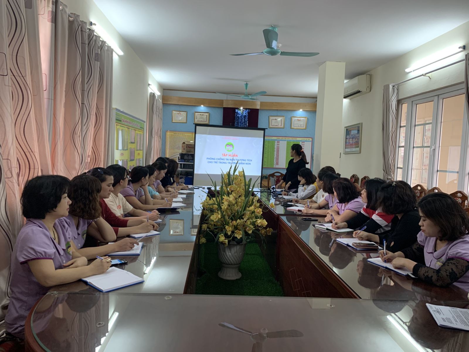 Ngày 5 thang 11 năm 2020 trường mầm non Sơn Ca tổ chức tập huấn về cách xử trí và phòng tránh tai nạn thương tích thường gặp ở trẻ mầm non cho 100% giáo viên trong trường.