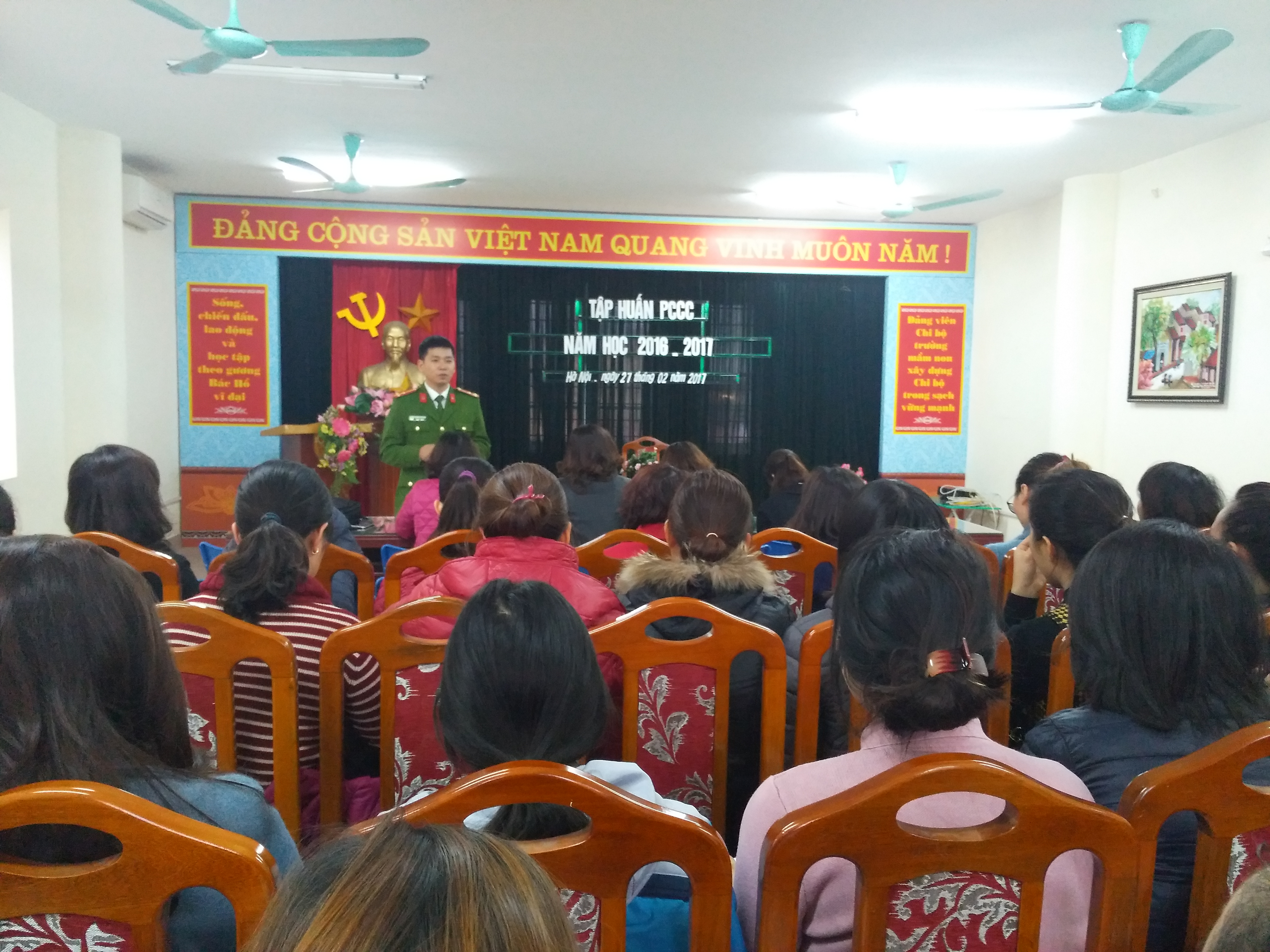 Ngày 27/02/2017 Ban Giám Hiệu của nhà trường đã phối hợp với Công an PCCC quận Long Biên tổ chức tập huấn, phòng cháy chữa cháy và thực tập phương án chữa cháy tại trường cho CBGV – NV trong toàn trường.