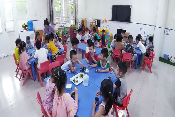 Các bé lớp Mẫu giáo lớn A3 với hoạt động Bé tập làm nội trợ: “pha nước quất”