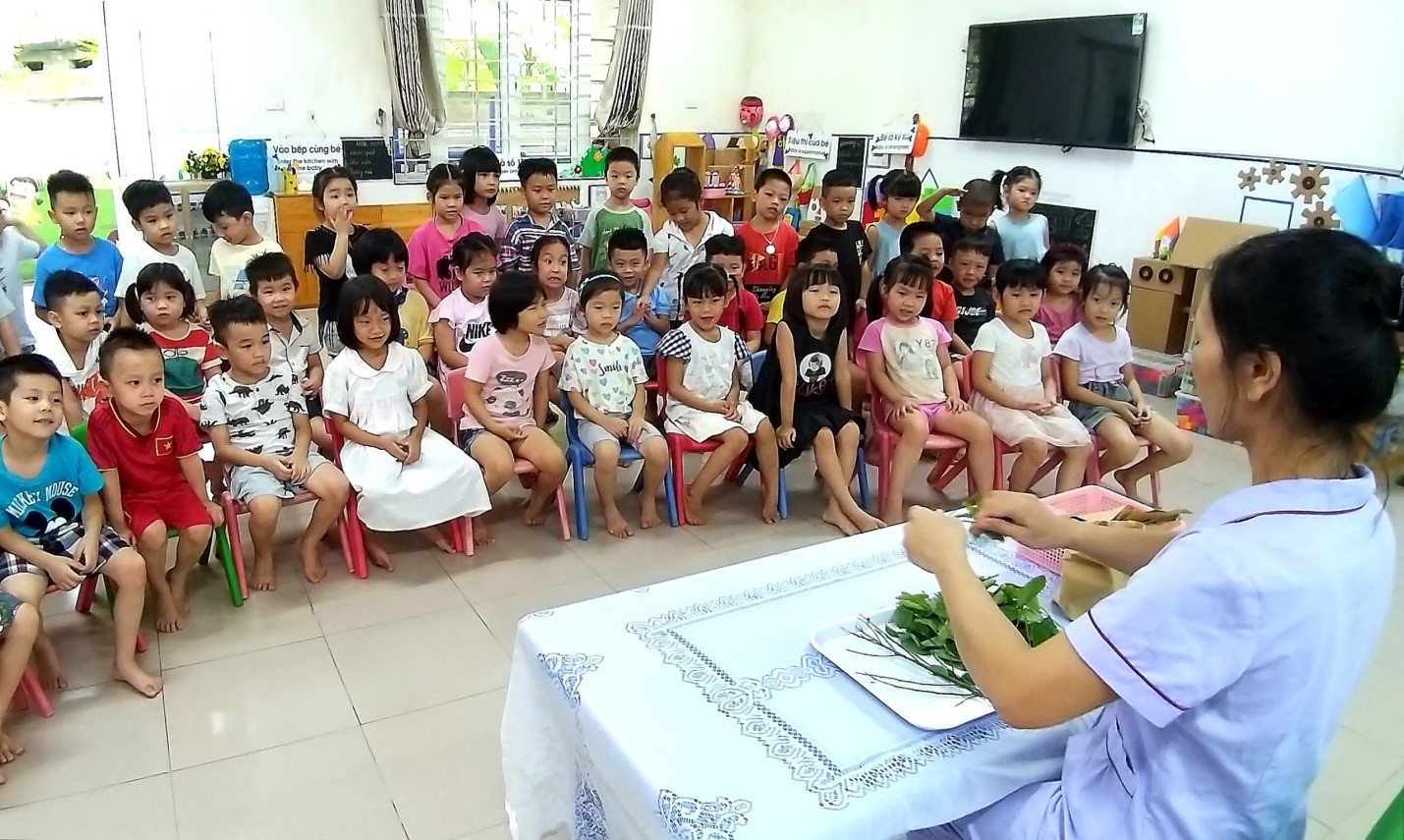 Các bé lớp mẫu giáo lớn A3 với hoạt động trải nghiệm “Nhặt rau ngót”