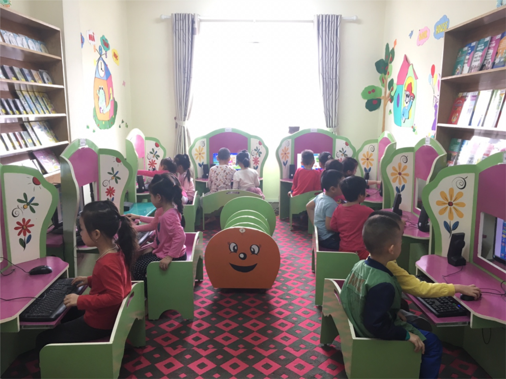 Theo lịch của tổ chuyên môn các bé khối mẫu giáo lớn tham gia hoạt động tại phòng học Kidsmart. Việc sử dụng trực tiếp kidsmart sẽ không chỉ giúp cho giờ học sinh động, thu hút, hấp dẫn trẻ và kích thích trẻ hào hứng, chủ động tham gia hoạt động mà còn giúp giảm bớt giáo cụ cho giáo viên.