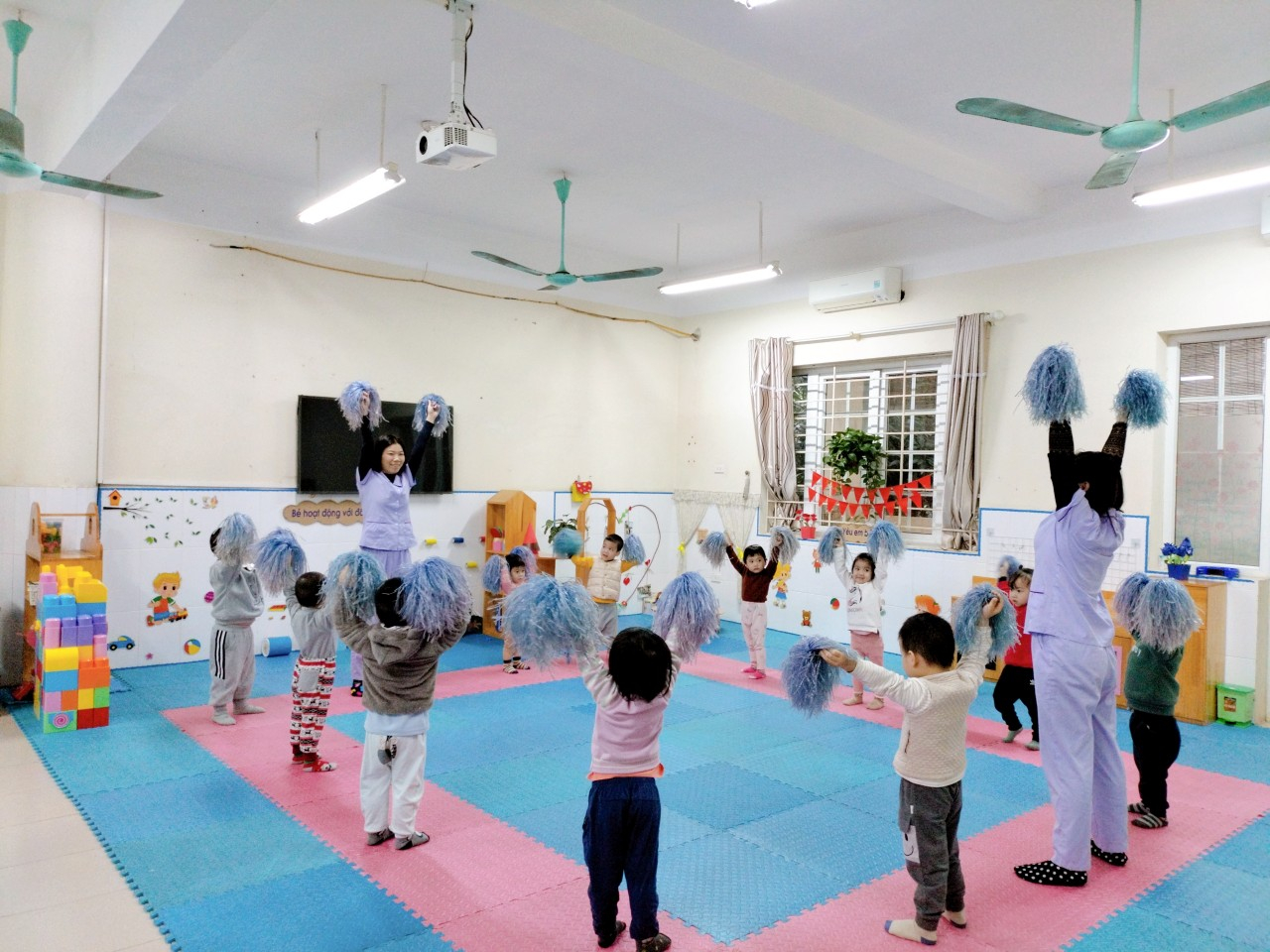Các bé lớp nhà trẻ D2 với hoạt động thể dục sáng
