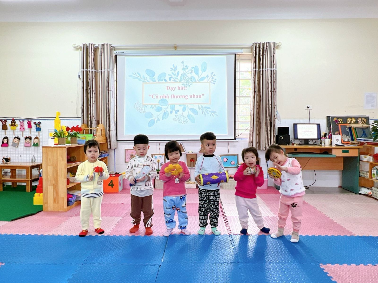 Các bé lớp nhà trẻ D3 với hoạt động âm nhạc: Dạy hát “Cả nhà thương nhau” – Trò chơi “Chơi với dụng cụ âm nhạc”