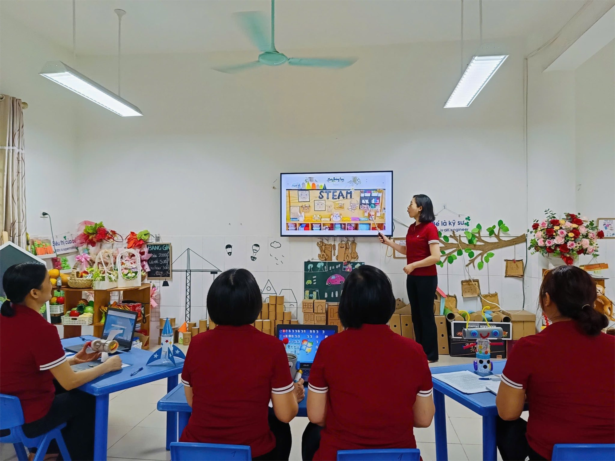 ✅ Đặc biệt, sinh hoạt các tổ chuyên môn được đẩy mạnh theo hướng nghiên cứu bài học, tập trung thảo luận sâu về cách thiết kế môi trường mở, lựa chọn nguyên vật liệu phong phú, cũng như phương pháp tổ chức hoạt động giúp trẻ chủ động khám phá, sáng tạo.