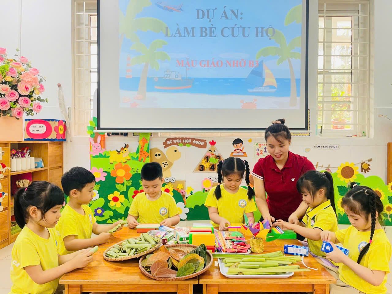 ☘️Từ những vỏ hộp sữa, bẹ chuối, que kem, ống hút... các con cùng nhau xếp thành những chiếc bè nhỏ xinh và thả xuống nước. Đôi tay nhỏ khéo léo, ánh mắt chăm chú và niềm vui khi chiếc bè bắt đầu trôi nhẹ trên mặt nước.