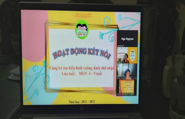 19h 15 mới bắt đầu vào buổi giao lưu, thế nhưng 19h các bạn nhỏ lớp MGN B3 đã có mặt, có vẻ các bạn đang rất háo hức để gặp cô và gặp lại các bạn sau những ngày Covid không được đến trường.