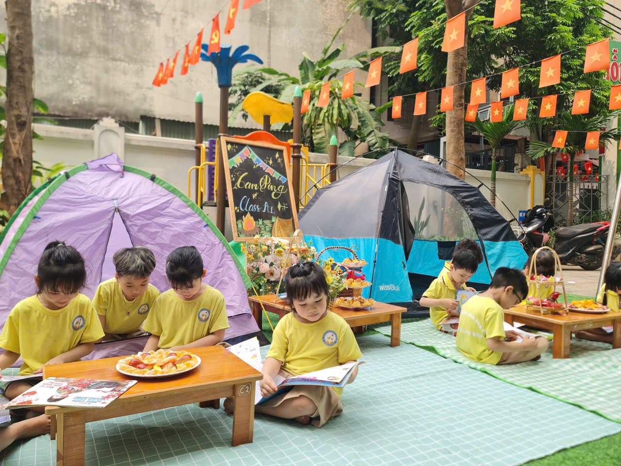 🏕Hôm nay, các bé lớp A1 đã có một buổi giao lưu cắm trại thật vui và đáng nhớ. Các con được cùng nhau tham gia dựng lều, trang trí không gian, vui chơi các hoạt động tập thể và thưởng thức những khoảnh khắc sinh hoạt ngoài trời đầy hào hứng.
