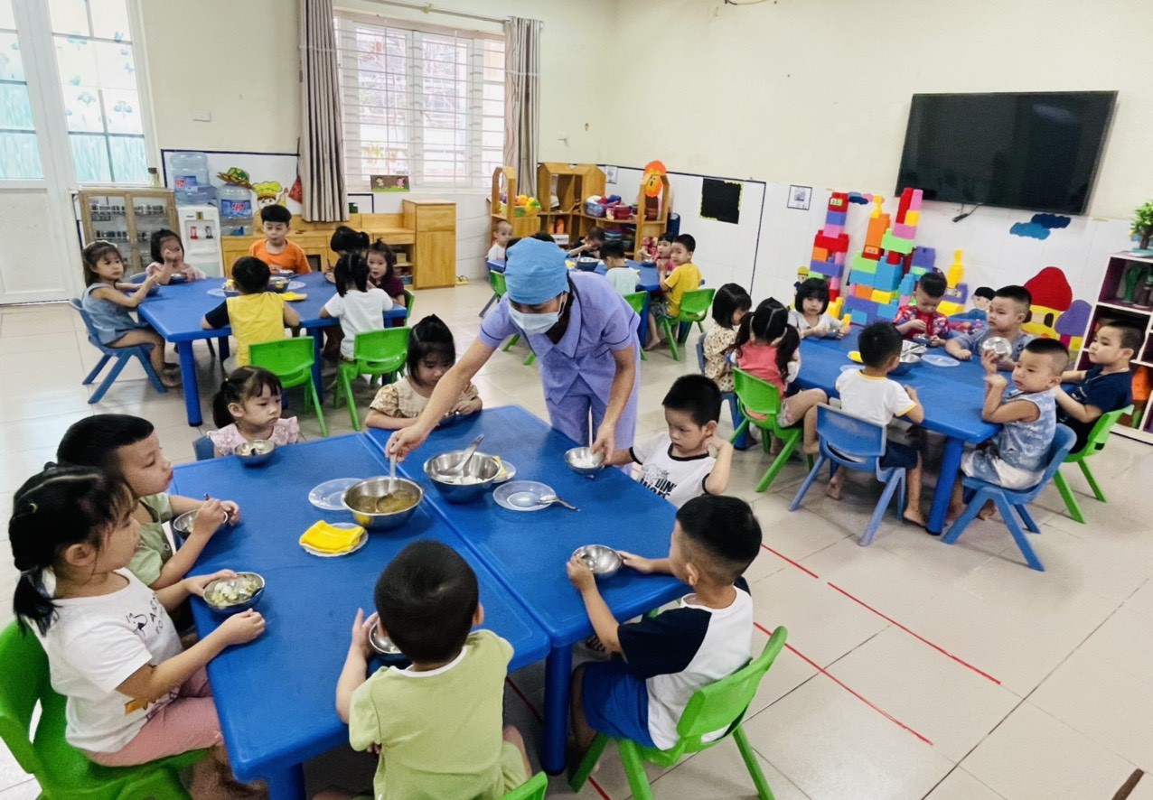 Hoạt động giờ ăn của các bé lớp Mẫu giáo nhỡ B1