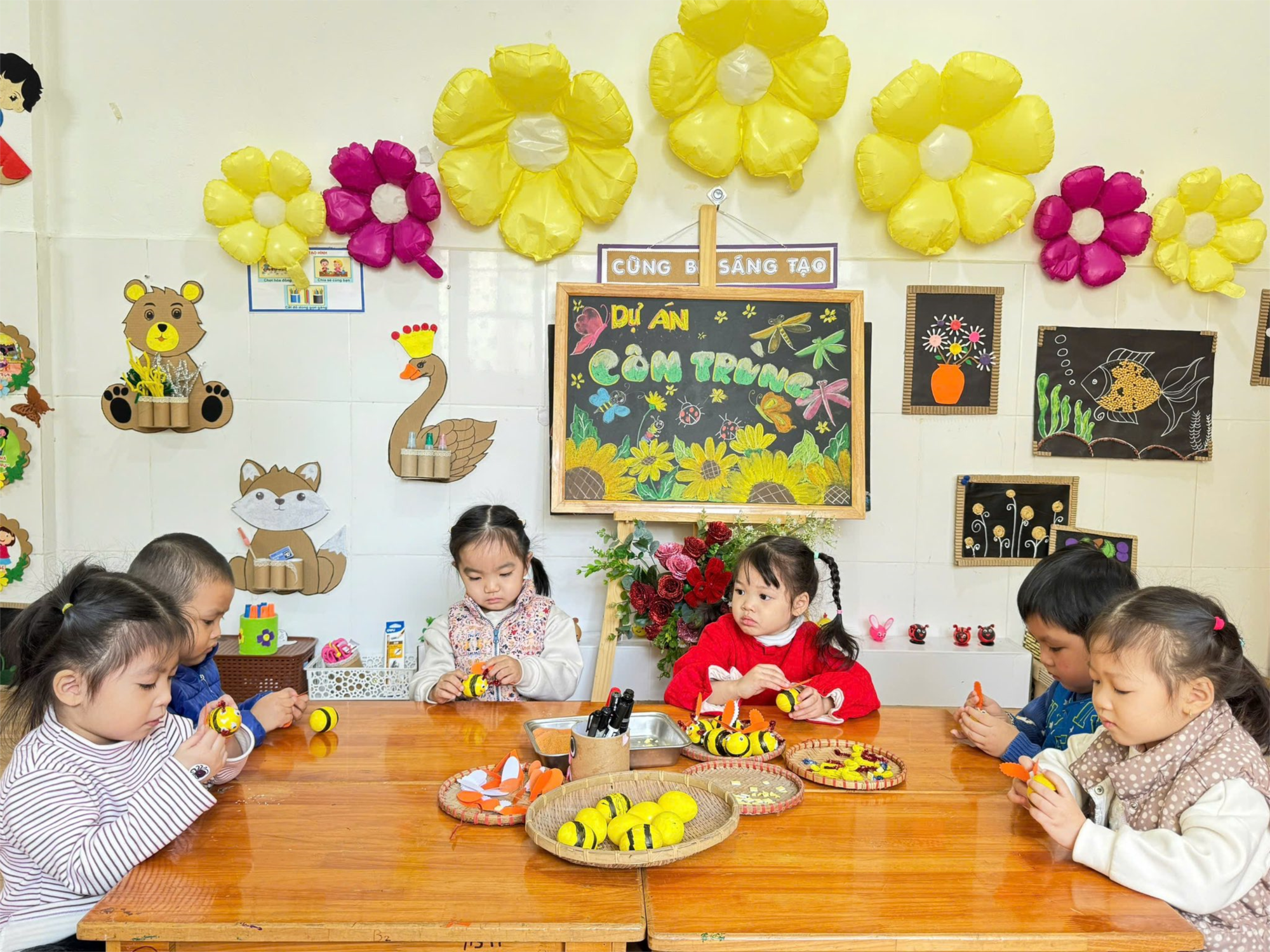 🍀Thông qua hoạt động làm con ong, các bé lớp MGB C2 được tìm hiểu về đặc điểm, cấu tạo và ích lợi của loài ong. Dưới sự hướng dẫn của cô giáo, các bé đã trực tiếp tham gia tạo hình chú ong từ các nguyên vật liệu đơn giản như: vỏ trứng, dây óng ánh, mắt nhựa, bìa màu,…