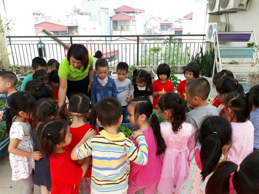 Lớp mẫu giáo nhỡ B1 đã tổ chức hoạt động ngoài trời với hoạt động có mục đích “Quan sát vườn rau” cho các bé. Các bé đã rất háo hức đến vườn rau của nhà trường để quan sát, thảo luận. Tại đây, các bé đã được các cô giới thiệu về các loại rau cũng như quá trình gieo hạt, chăm sóc các loại rau tươi sạch như thế nào.