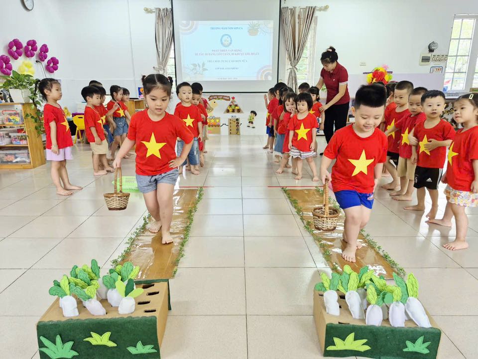 🌈 Hôm nay, các bé lớp MGN B3 được cô giáo hướng dẫn tập vận động cơ bản: "Đi bằng gót chân, đi khuỵu gối, đi lùi"