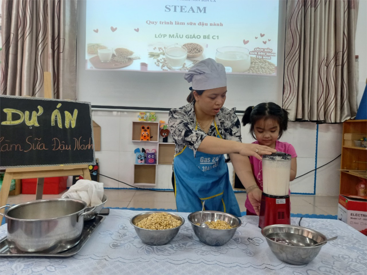 Trong hoạt động này, các con được biết về quy trình làm sữa đậu nành.