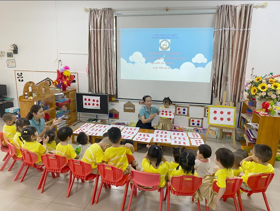 Lớp Nhà trẻ D1 trường mầm non Sơn Ca tổ chức cho trẻ tham gia hoạt động: Tạo hình: Dán quả bóng tròn màu đỏ
