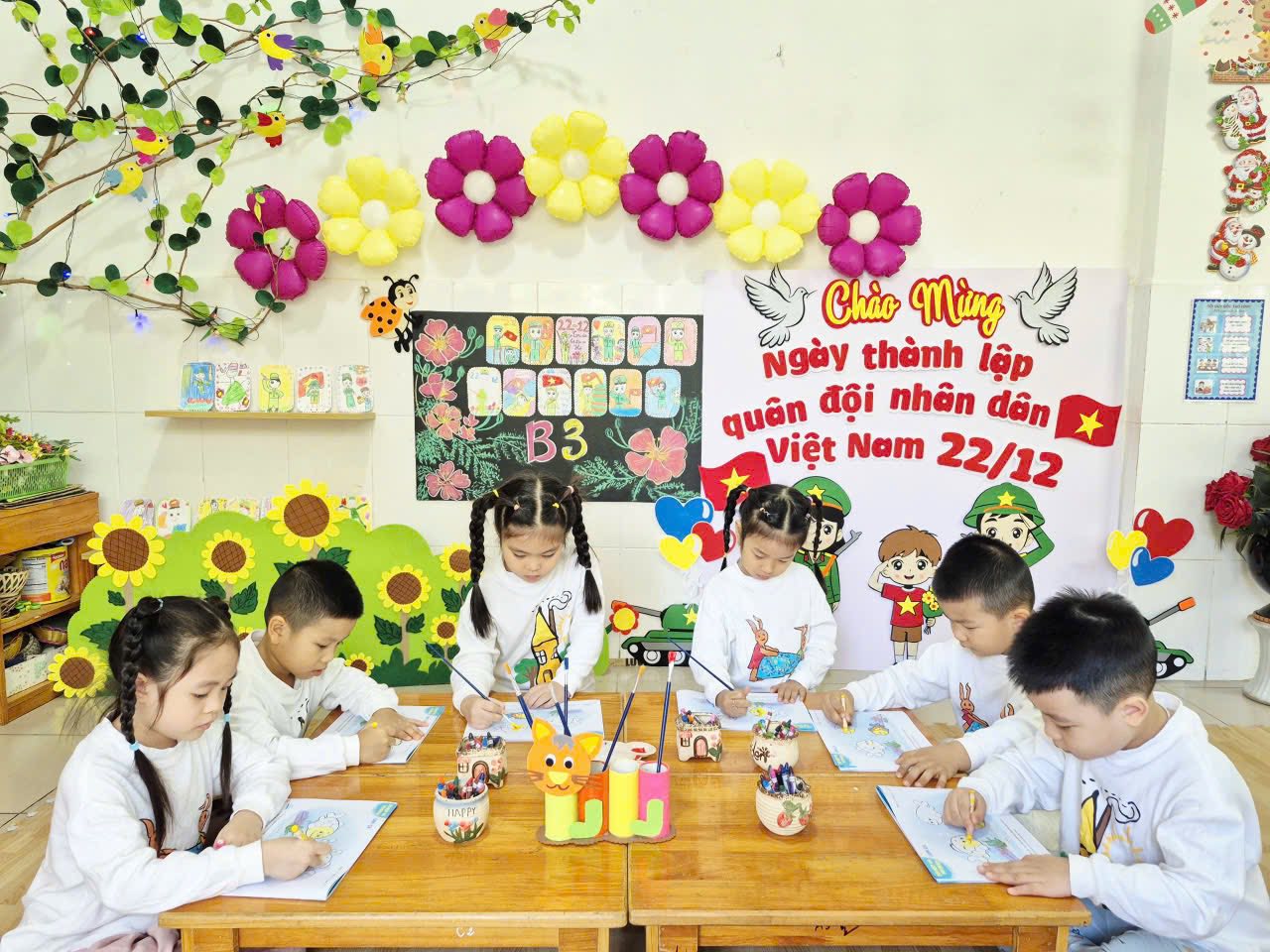 Hoạt động tạo hình luôn là một hoạt động mang lại sự hấp dẫn và hứng thú cho trẻ. Với hoạt động:"Tô nét và tô màu con cá", các bé lớp MGN B3 đã rất khéo léo tô nét và tô kết hợp nhiều màu sắc sáng tạo để hoàn thành bức tranh đàn cá thật ngộ nghĩnh, đáng yêu.