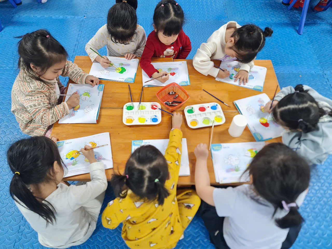 Dưới đây là một số hình ảnh đáng yêu của các con trong giờ hoạt động tạo hình.