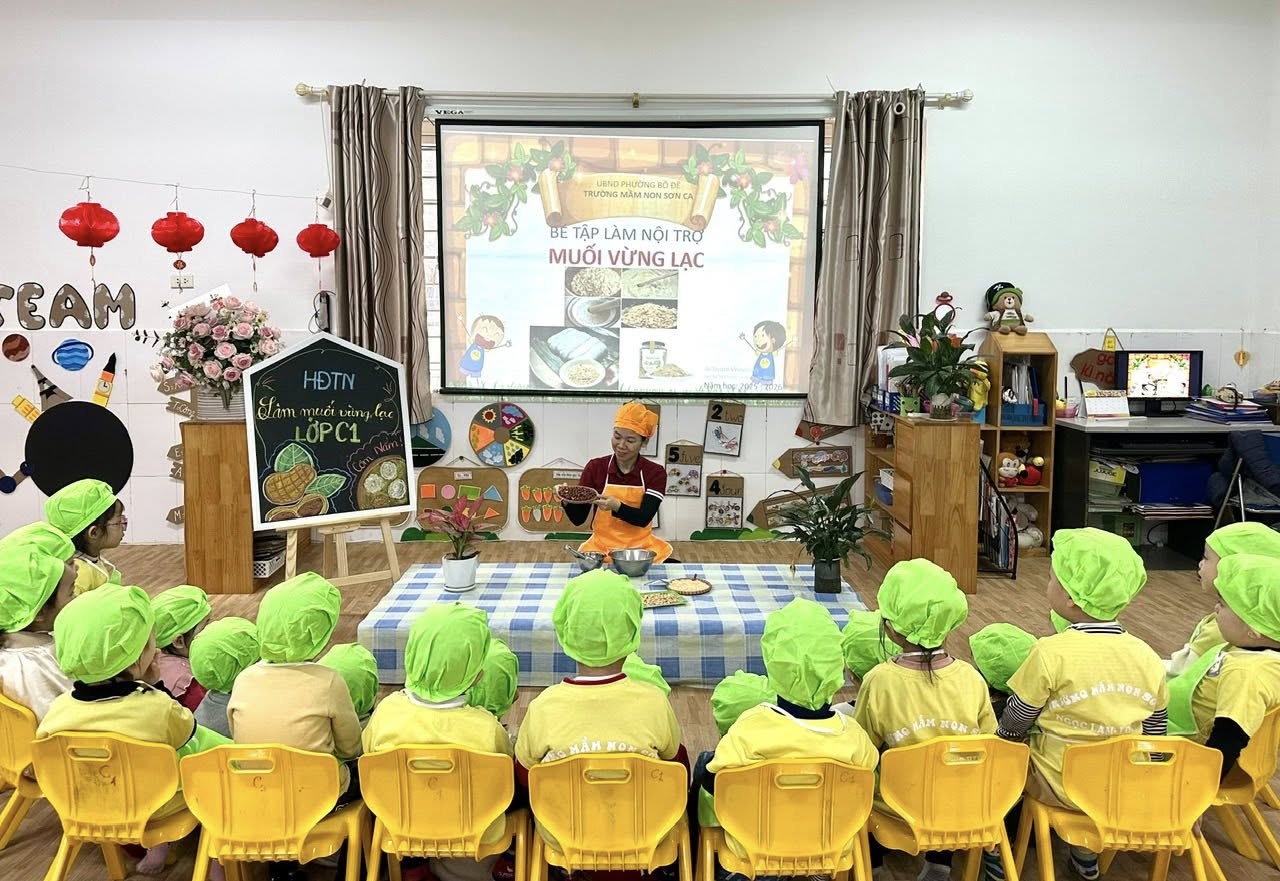 Hôm nay, các bé yêu lớp MGB C1 rộn ràng tiếng cười với hoạt động trải nghiệm: “Bé làm muối vừng, lạc”. Các con được cô giáo giới thiệu những nguyên liệu quen thuộc như: vừng, lạc, muối và tự tay giã, trộn để tạo nên món muối vừng lạc thơm ngon, hấp dẫn.