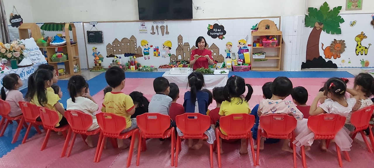 Hoạt động trải nghiệm “Nhặt rau muống” của các bạn nhỏ lớp Mẫu giáo nhỡ B2 - Trường mầm non Sơn Ca