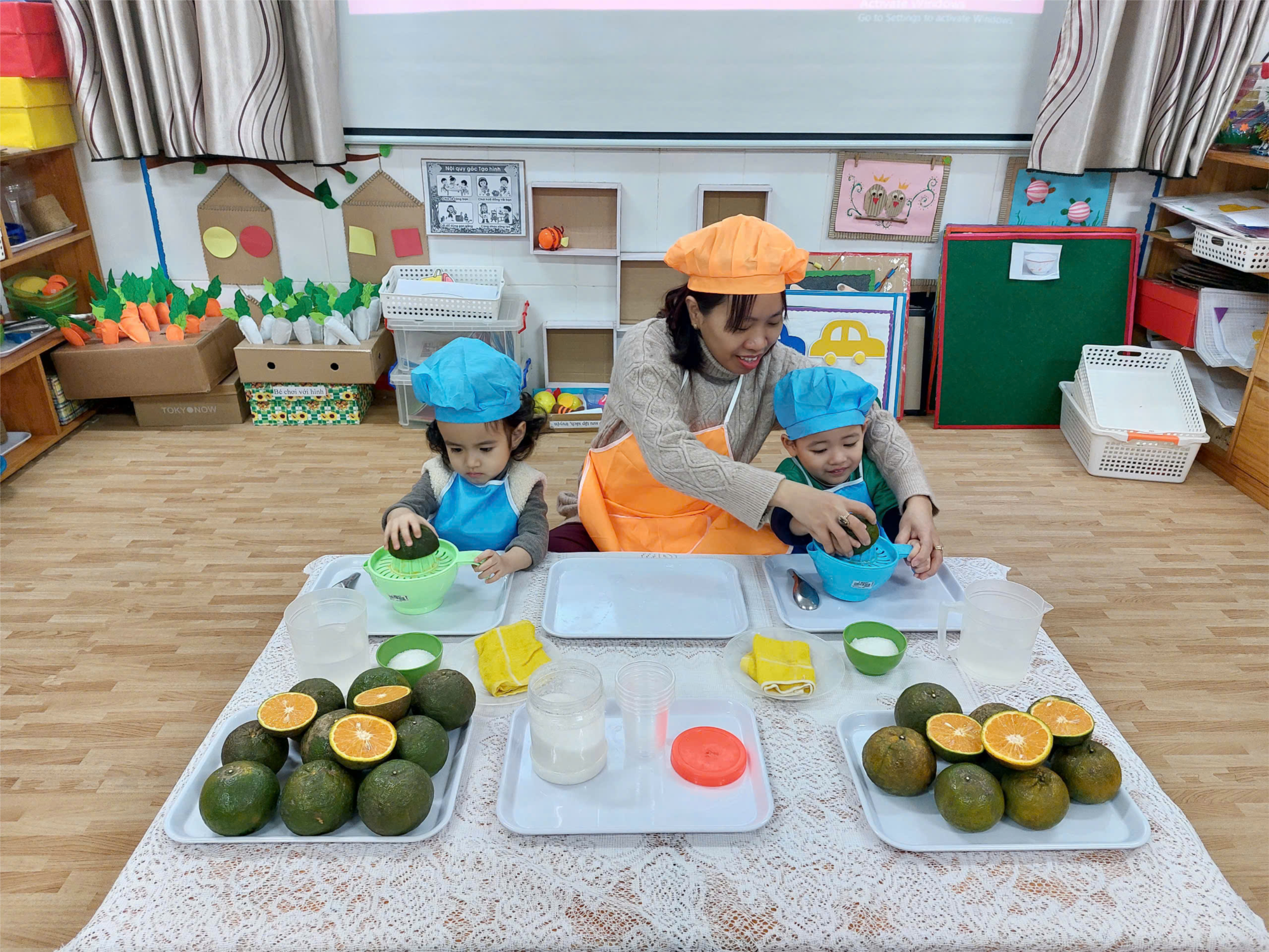✅ Qua hoạt động bé không chỉ được rèn kỹ năng tập trung chú ý, tính cẩn thận, khéo léo mà bé còn biết được muốn cơ thể khoẻ mạnh và lớn lên cần phải ăn uống đủ chất và cần uống bổ sung các loại nước hoa quả chứa nhiều vitamin. Đặc biệt nước cam có tác dụng giải khát và bồi bổ thể lực vì có nhiều vitamin C. 🥰