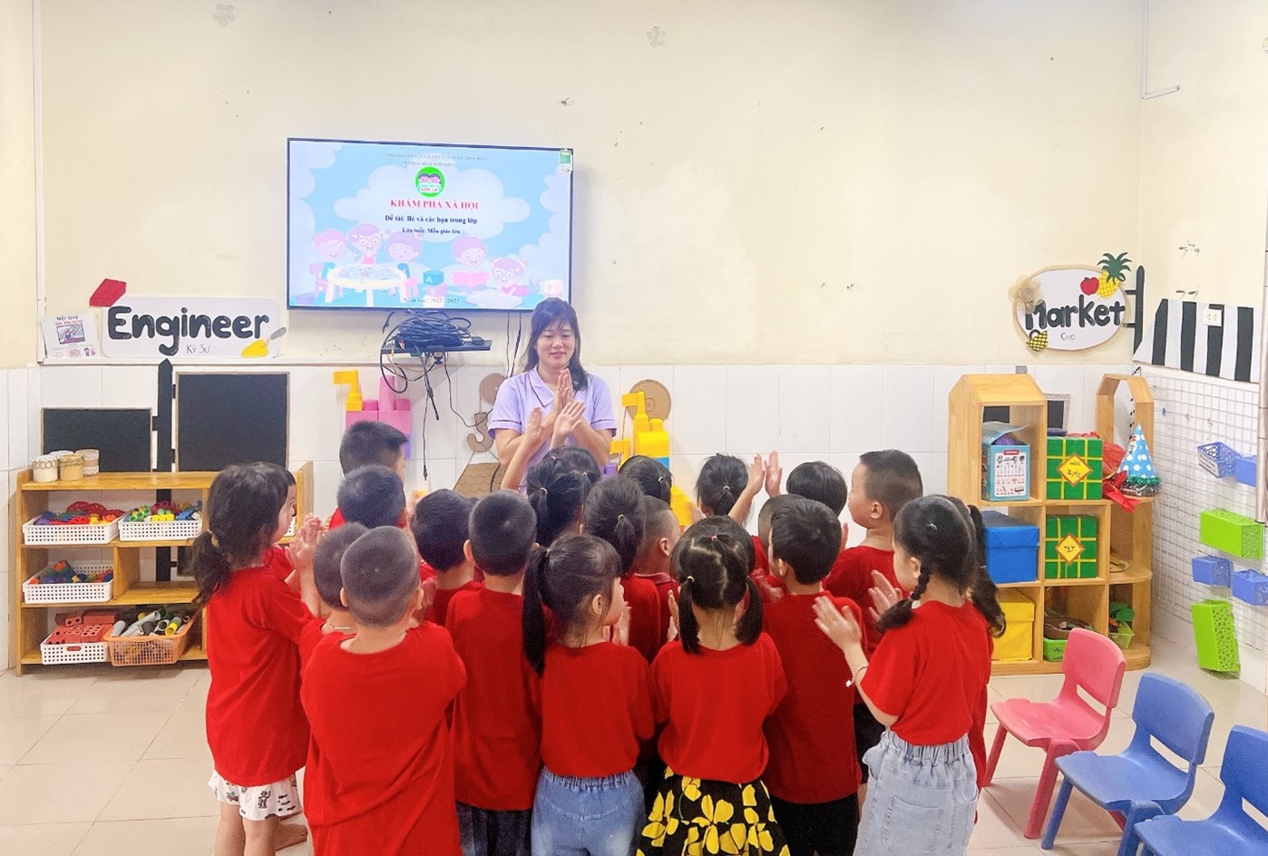 Cô giáo và các bé tham gia hoạt động khám phá: “Bé và các bạn trong lớp”.