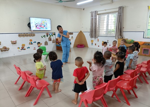 Trẻ hát và vận động cùng cô