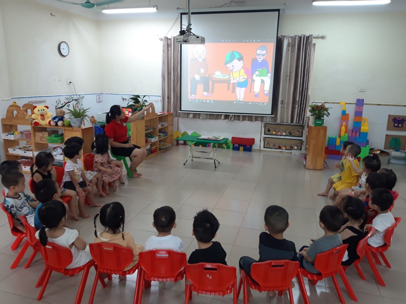 Cô giáo và các bé Mẫu giáo bé C3 cùng trò chuyện xem video, tranh ảnh, tham gia các hoạt động tìm hiểu rõ hơn về cách chào hỏi, lễ phép. Bé biết chào cô giáo khi đến lớp và chào hỏi ông bà, cha mẹ khi đi học về.