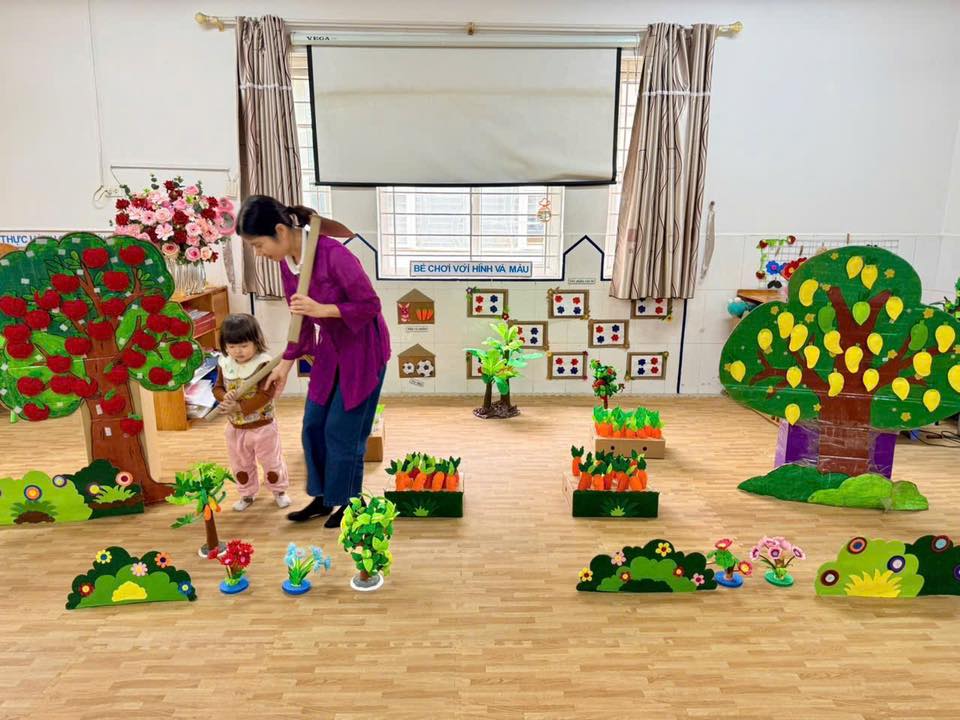🌞 Qua hoạt động, trẻ biết đi theo hướng thẳng, giữ vật chắc chắn trên tay, phát triển khả năng phối hợp tay – mắt, rèn sự nhanh nhẹn, khéo léo đồng thời hình thành tính kiên trì, cẩn thận và biết tuân thủ hiệu lệnh. Trẻ hào hứng tham gia trò chơi " Gà trong vườn rau" cùng cô và các bạn.