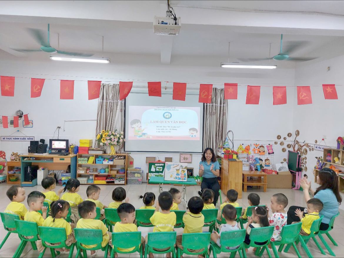 🎉 Buổi đầu các bé được rèn kỹ năng chú ý lắng nghe cô đọc thơ, về nhóm, đội hình ngồi học hình chữ U, ngồi vòng cung, lắng nghe và giơ tay trả lời câu hỏi, khi cô gọi tên bạn nào bạn đó đứng dạy trả lời.