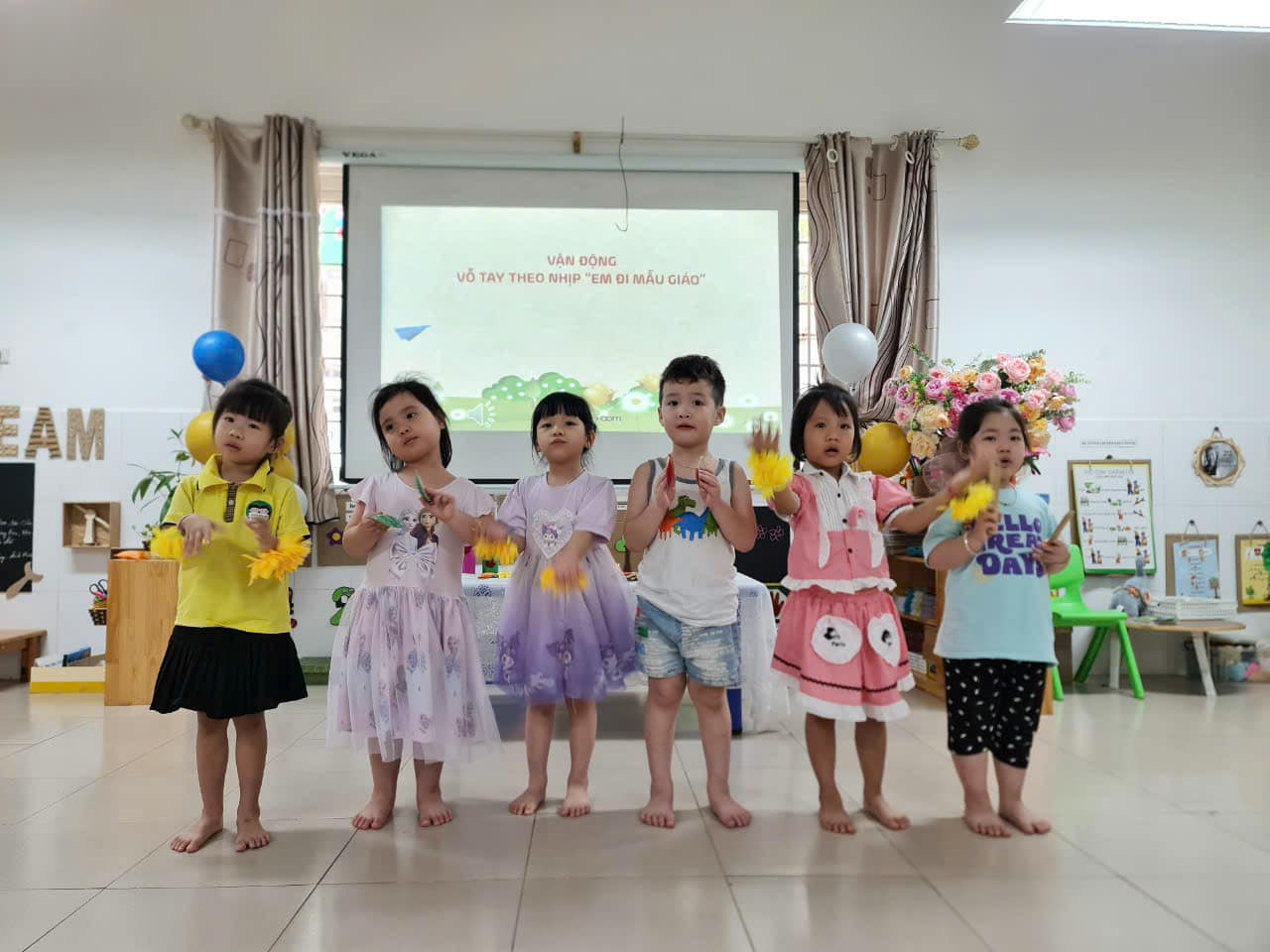 Xin mời bố mẹ cùng trải nghiệm với các bé lớp B1 qua bài học: Vận động theo nhịp "Em đi mẫu giáo". TCÂN "Âm thanh vui nhộn"
