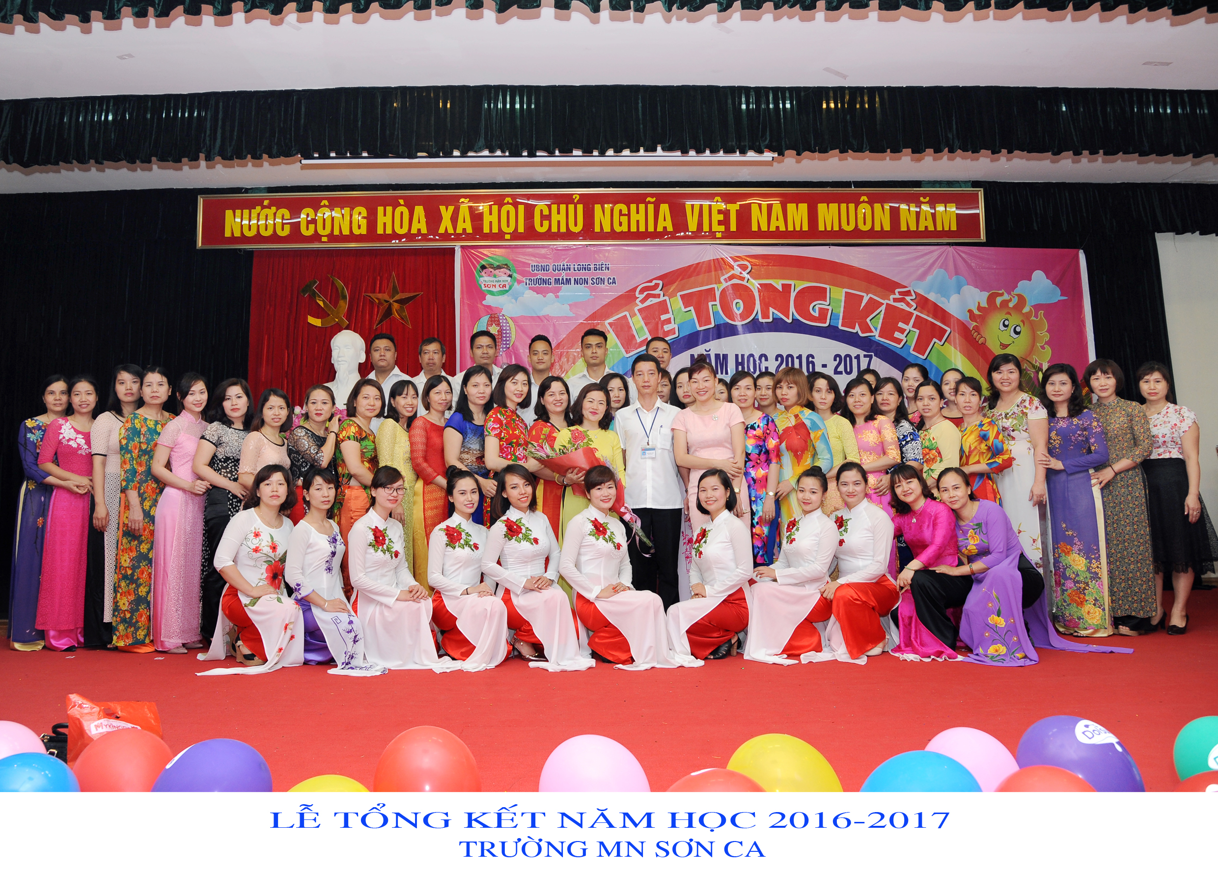 Hôm nay, trong không khí tưng bừng, phấn khởi cô và trò Trường mầm non Sơn Ca tổ chức lễ tổng kết năm học 2016 – 2017 tại Nhà văn hóa Phường Ngọc Lâm - 41 Nguyễn Sơn.